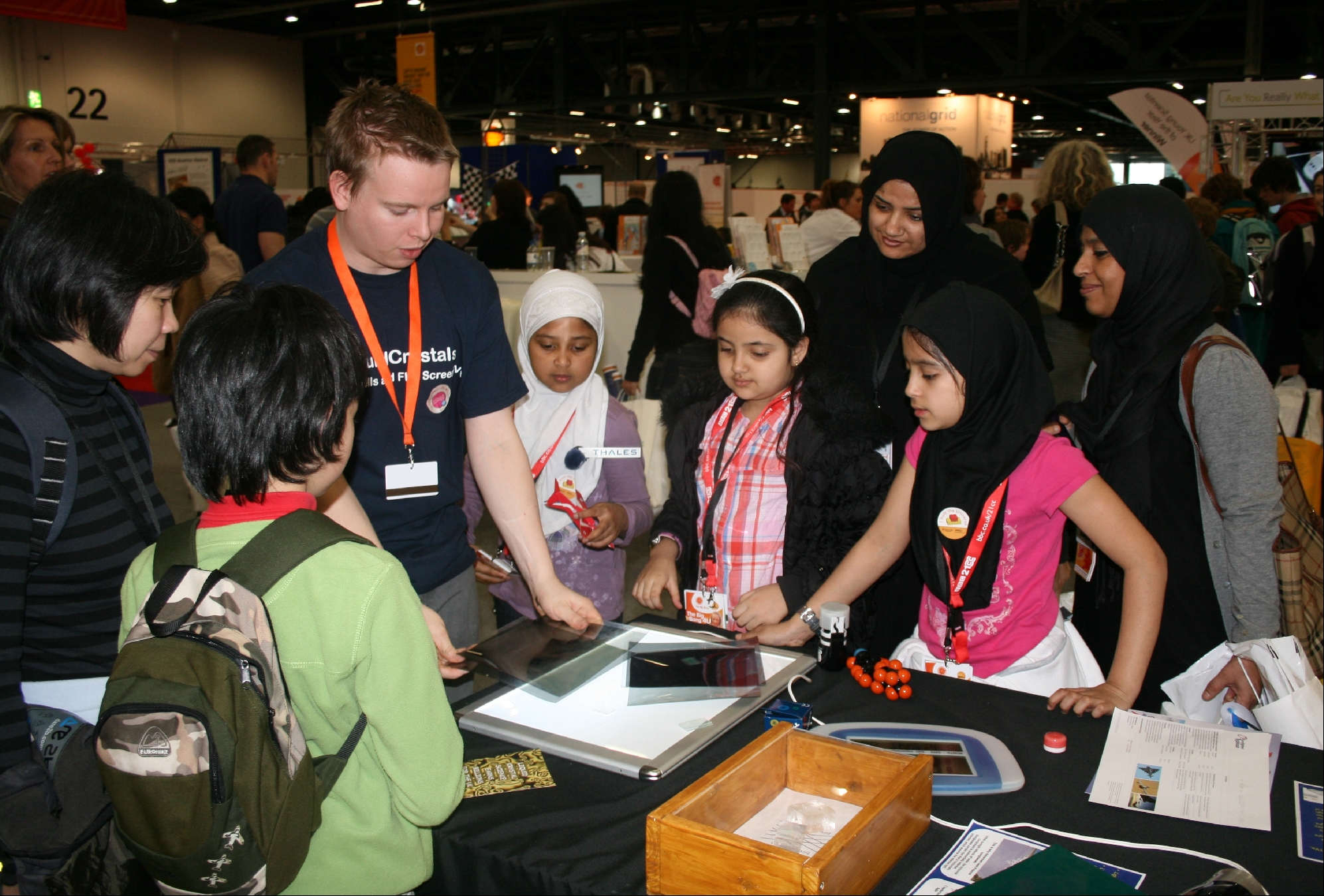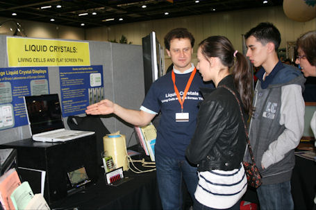 Our group, together with colleagues from the Universities of Manchester, York and Sheffield Hallam developed a presentation with hands-on activities for the Big Bang Science Festival in London. We also took part in one of the Royal Society Summer Science Exhibitions. We prepared an overview presentation on the topic of liquid crystals, “Liquid Crystals: living cells and flat screen TVs”. It was aimed at the general public, from school kids to adults, to demonstrate the latest developments in liquid crystal research and to engage the visitors in discussions about related technologies. Selected and informative hands-on experiments explained the basics aspects of liquid crystal properties, such as birefringence, phase transitions, thermochromism, as well as the principle of flat screen TVs operation. The magic of selectively reflecting beetles and the strength of Kevlar fibres and fabric, which is used in a bullet-proof jacket, proved particularly popular. |